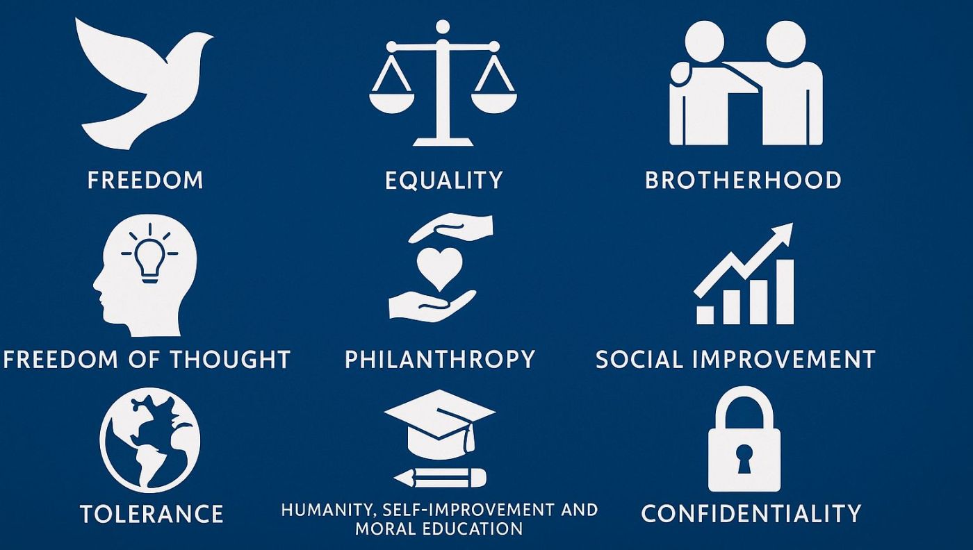 Moral and spiritual development – Members are encouraged to reflect on their character, improve themselves, and live in accordance with ethical principles. Secrecy and discretion – Not in a malicious sense, but as an exercise in humility, respect for tradition, and the principle that virtue should be demonstrated by actions rather than publicity. Symbolism and tradition – Freemasons use symbols and allegorical rituals to teach lessons about morality, duty, and the human journey. |